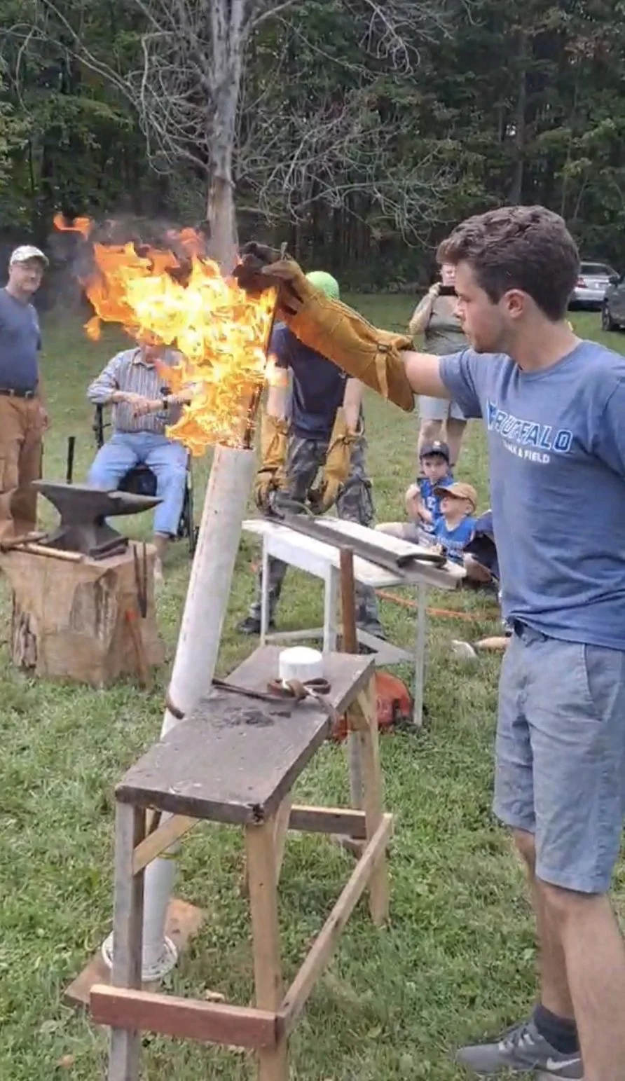 Meet Alex Stearns, a trained welder, who assists Sam with the welding of his zany tool designs. While Alex only has one 1/2 finished knife to his name, he contributes around the forge quite a bit, as some of our larger creations require both Sam and Matt to hold the steel while Alex takes the video.