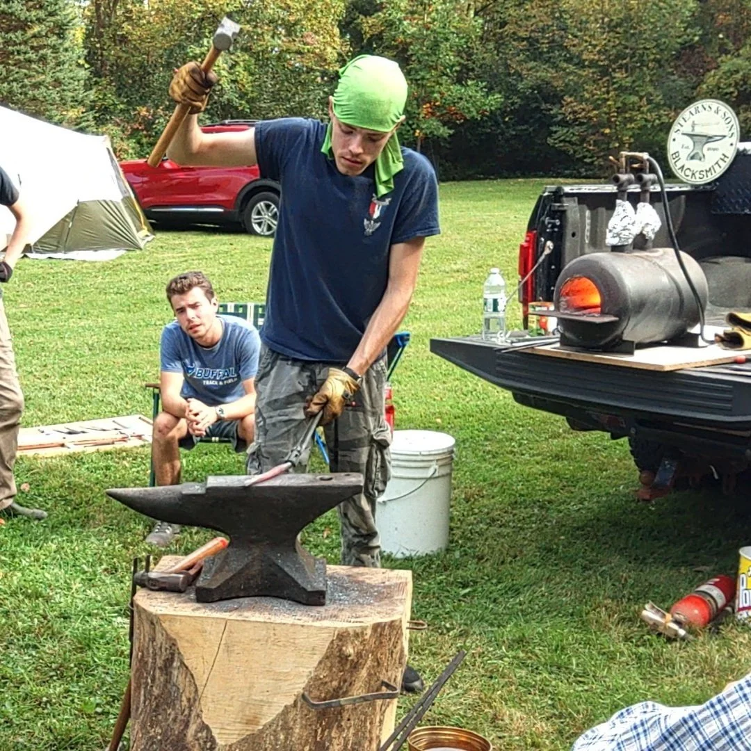 I specialize in creating custom orders that reflect my clients’ visions, adding my own twist and style to each piece. My favorite part of the process is collaborating with customers to bring their dream blades to life. As a proud member of the American Bladesmithing Society, I’m currently preparing to test for my Journeyman Smith certification next year.